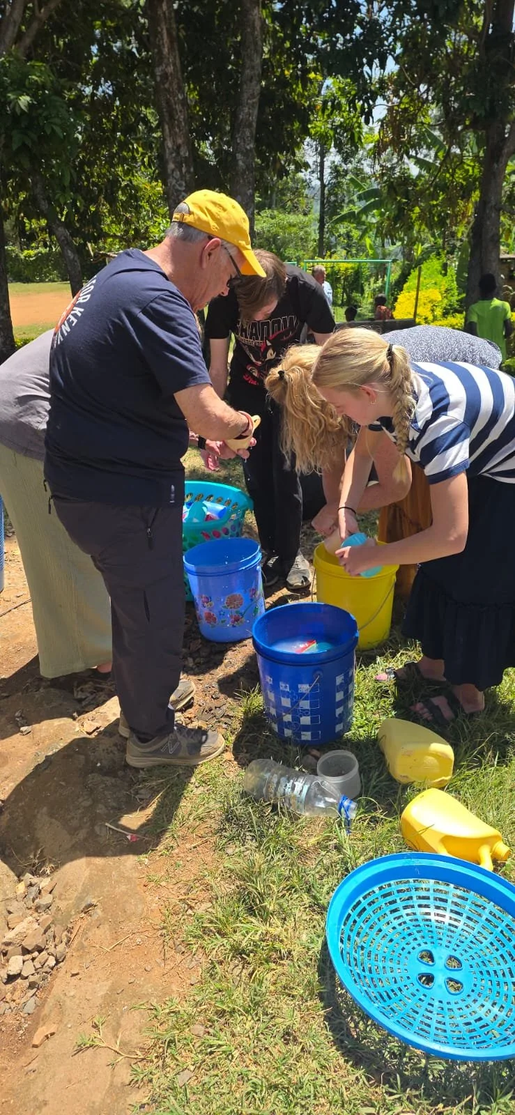 In the afternoon, the team participated in the local AWANA program. Following the AWANA program, they visited the homes of 2 widows. During these visits, the team prayed over the site of a new kitchen that was being built for a widow and her 14 grandchildren. They then visited the site of the recently completed Water Tank Project for Miriam. This new water tank provides water for Miriam, her children, her grandchildren, and even her neighbors.